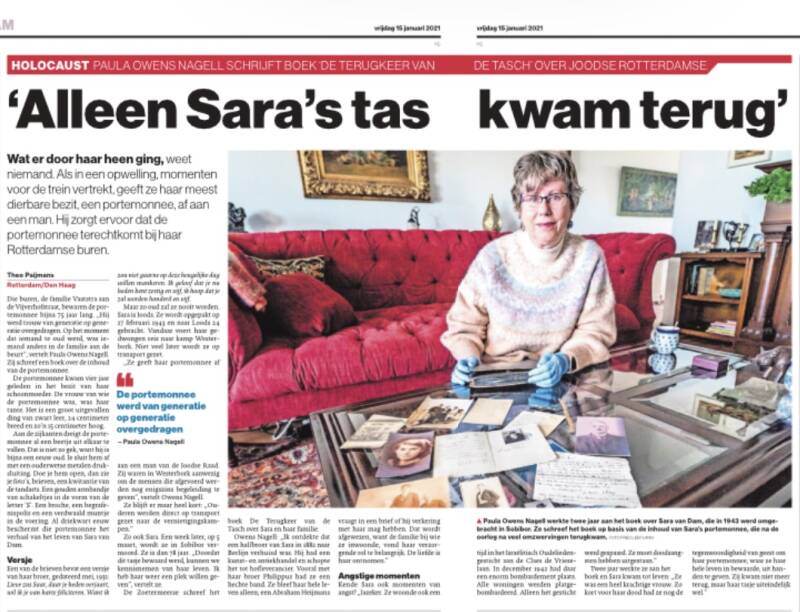 Twee jaar werkte ze aan het boek en Sara kwam tot leven: ,,Ze was een heel krachtige vrouw. Zo kort voor haar dood had ze nog de tegenwoordigheid van geest om haar portemonnee, waar ze haar hele leven in bewaarde, uit handen te geven. Zij kwam niet meer terug, maar haar tasje uiteindelijk wel."
